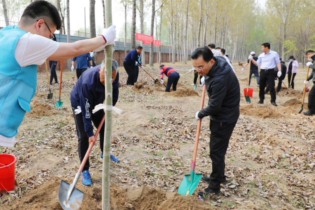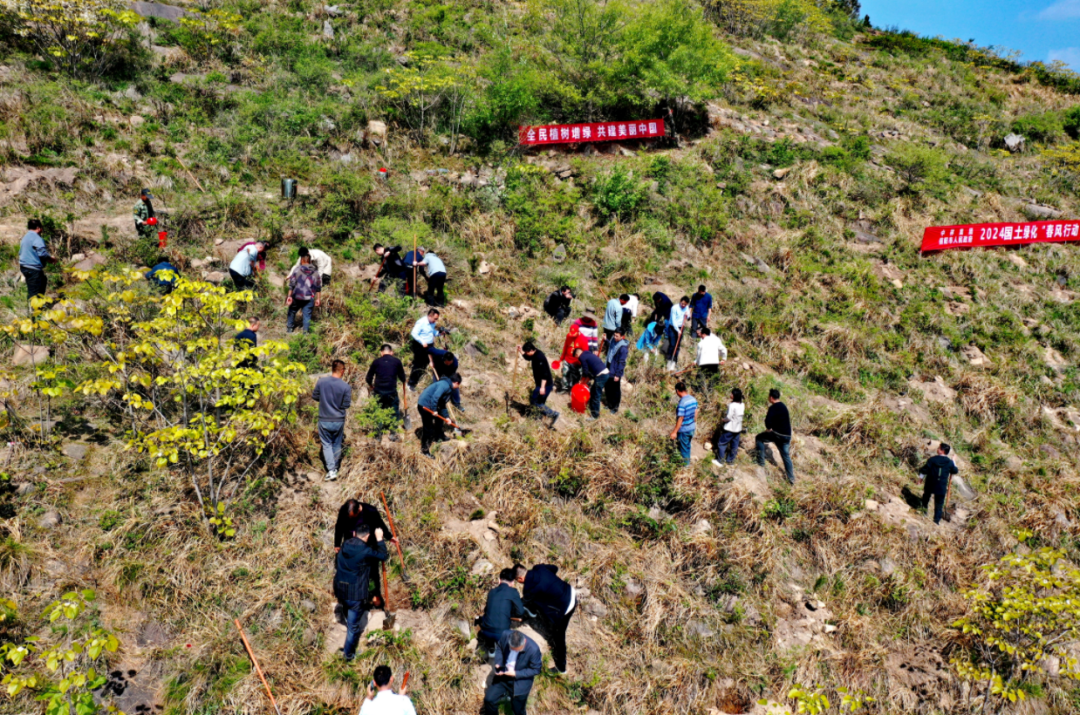 4月12日上午,在河南信阳淮河上游天目山退化林补植修复项目现场,集团公司党委书记、董事长、总经理单忠立,党委委员、副总经理李留彬,信阳市委常委、副市长李俊和大家三五一组,手持铁锹、水桶等工具来到植树区域,挥锹刨坑、扶苗培土、提水浇灌、平整踩实……大家悉心栽种着黑松、麻栎等苗木,现场一派热火朝天的景象。经过一个多小时的辛勤劳动,一株株“新生”的苗木“安家落户”,在微风吹拂下,焕发出勃勃生机。