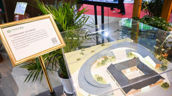 展会上,中林集团聚焦“科学扩绿 为国储材”“创新引领‘双碳’先行”“美丽中国 乡村振兴”“生态产品价值实现”“绿水青山就是金山银山”五大主题,集中展现了中林集团“落实森林‘四库’建设美丽中国”的丰硕成果,展厅面积近500平米,吸引了众多参观者和行业人士的关注。从杭州亚运会亚运村服务中心空降至展厅中心的木结构建筑“云桂”更是成为现场的“明星”展品,吸引了众多参观者驻足观看并拍照留念。