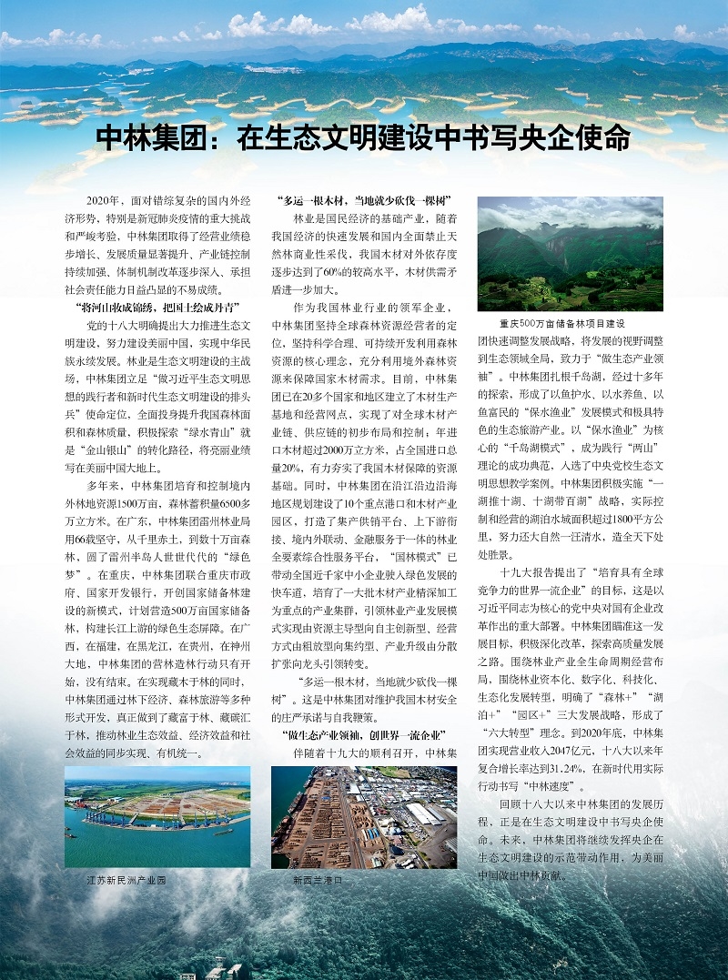 《中国林业集团有限公司2021年社会责任报告》正式对外发布,这是中国林业集团有限公司(以下简称中林集团)第六次向社会公开发布的年度报告,全面详...