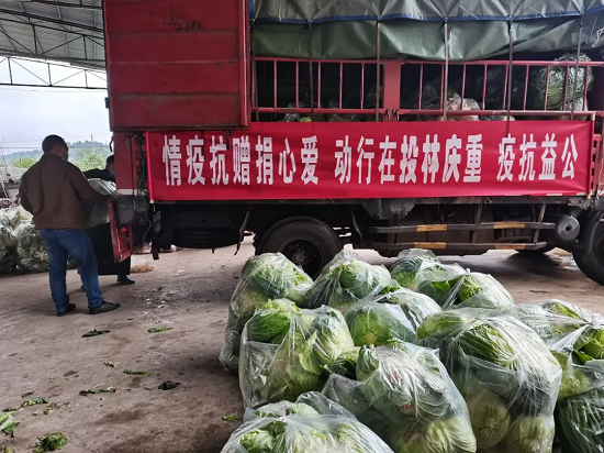 重庆林投公司党总支高度重视疫情防控工作,在得知主城区蔬菜紧缺的保供需求后,积极协调、对接吴家镇双流村万亩蔬菜基地,共计采购5吨蔬菜,第一时间安排保供物资安全及时送达至防疫一线。