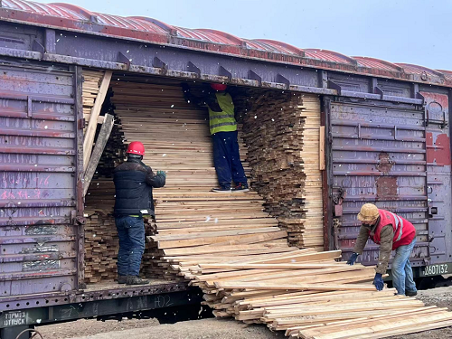 满洲里伊利托天气突变坚持作业4月19日,内蒙古满洲里下了一场春雪,林场集团所属满洲里伊利托基地现场部工人冒着风雪,在宽轨1道,执行俄罗斯棚车散装木材卸车任务。工人清晨5点开工,经过一天紧张有序的作业,