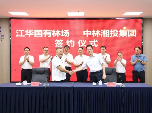 7月28日,中林(湖南)林业投资开发集团有限公司(以下简称“中林湘投”)与江华国有林场签署《国有林权合作意向协议》,永州市副市长肖扬出席仪式,中林集团森林资源管理部部长、中林湘投党委书记、执行董事王鹏