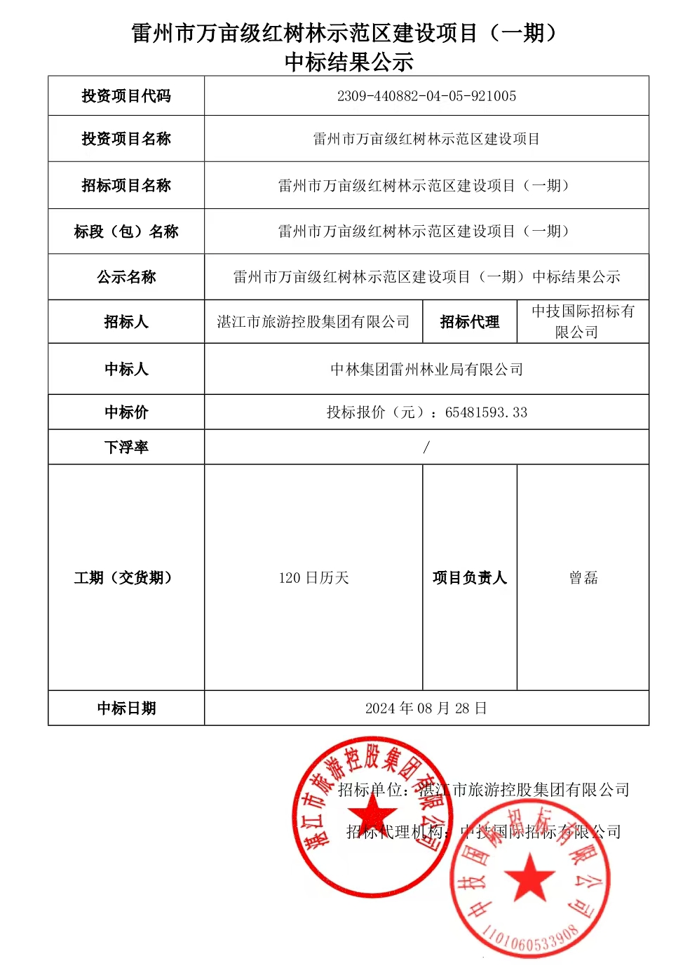 近日,广东省公共资源交易平台公示雷州市万亩级红树林示范区建设项目(一期)中标情况,中林雷林公司成功中标。该项目位于广东湛江雷州市,项目建设规模为1560.68亩,项目建设内容包括红树林种类选择、红树林种植、后期管护等。
