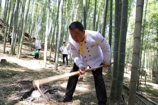 “笋出徽州六邑,以问政山者味尤佳”。活动中,大厨们前往问政山现场,飞舞着锄头,探寻“山中珍宝”,满载而归。