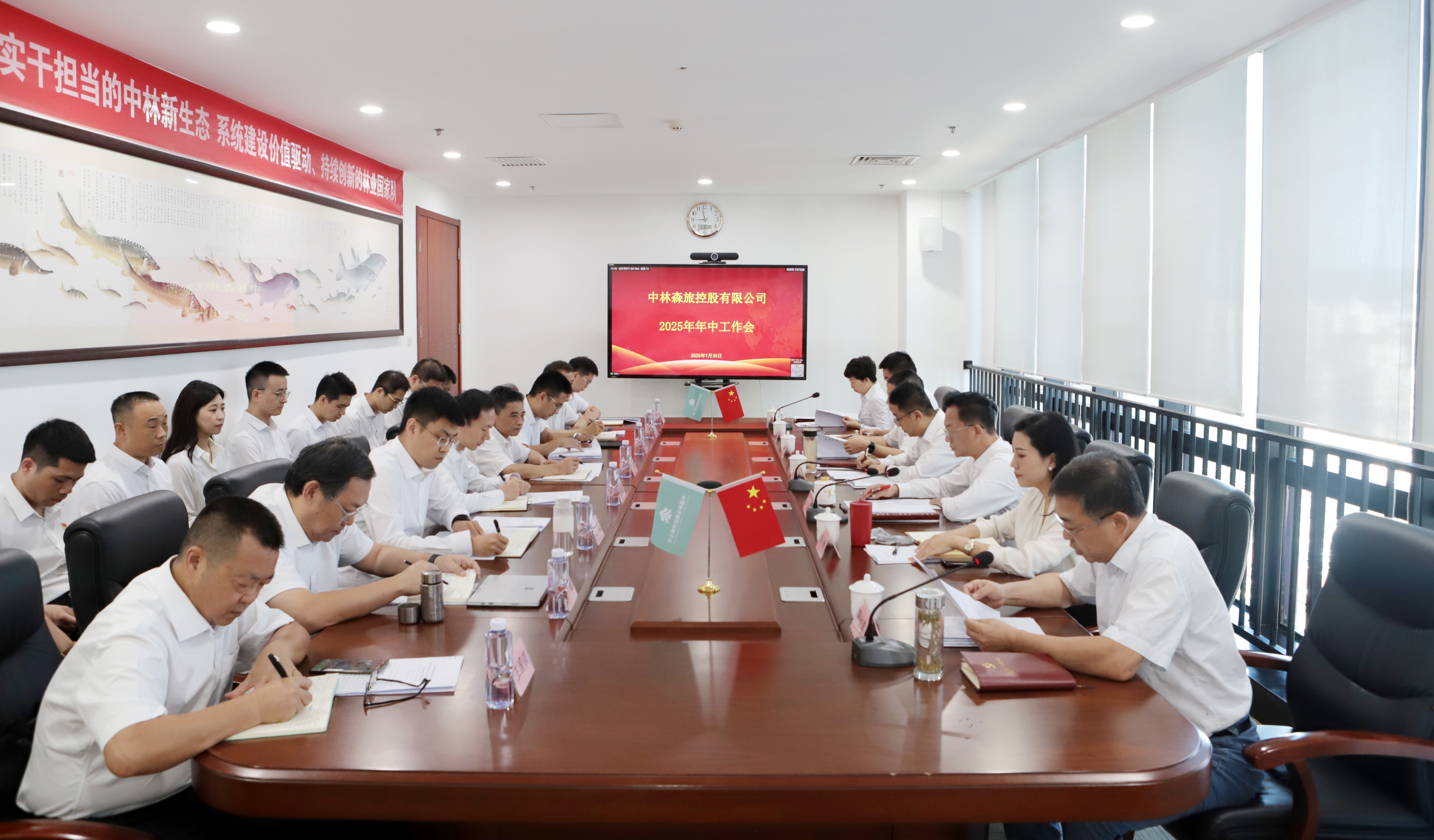 7月30日,中林森旅控股在京召开2025年年中工作会议,深入学习贯彻习近平新时代中国特色社会主义思想,认真落实集团2025年年中工作会精神,聚焦集团“六个全面”和“七大攻坚任务”,总结上半年工作落实情况,分析新形势新任务,部署下半年和今后一个时期工作,引导广大干部员工坚定信心、奋勇争先,努力建设具有行业影响力的生态服务企业。
